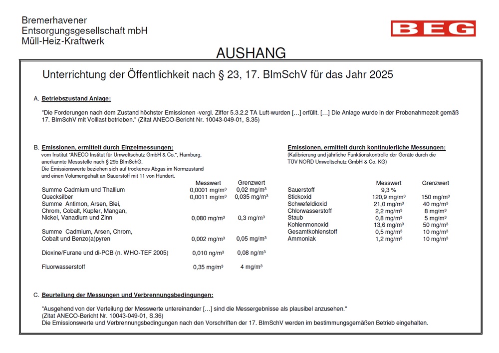 Informationspflicht nach §23, 17. BlmSchV